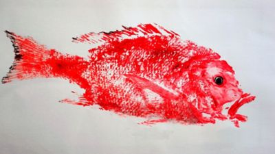 El Gyotaku es una técnica de estampación originaria de Japón que en sus comienzos se usaba para registrar las capturas de una buena noche de pesca, conservando la memoria de los trofeos mediante sus huellas.