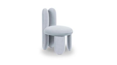 Las líneas redondeadas y curvas definen su asiento, respaldo y patas. Es una pieza irresistible donde la tapicería aterciopelada se combina de manera divertida con un acabado posterior acristalado. Glazy Chair es la guinda del pastel de sus diseños de interiores.