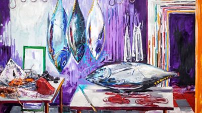 La maestría del chef de Kabuki, Ricardo Sanz (Madrid, 1958), y el arte del pintor Abraham Lacalle (Almería, 1962), forman un buen caldo de cultivo para una colaboración que va más allá de la amistad y que impregna de color el buque insignia el Grupo Kabuki tiene en el Hotel Wellington.