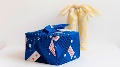 El furoshiki es una tela cuadrangular tradicional japonesa, que se utiliza para transportar todo tipo de objetos y para envolver regalos, sin importar su tamaño, la forma y sin costuras.
