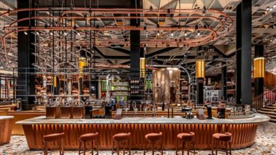 La experiencia de reserva premium también ofrecerá una disponibilidad limitada de café "Arábico" extraído de 30 países de todo el mundo, prensado por primera vez en Europa. En su entresuelo, los clientes pueden descubrir el Arriviamo Bar, donde los mixólogos crean cócteles especiales detrás de una barra de mármol de 30 pies de largo, y finalmente, a la izquierda, los clientes serán recibidos con la aclamada panadería italiana, Princi, que ofrece panes artesanales, italianos pasteles y muchas más delicias.