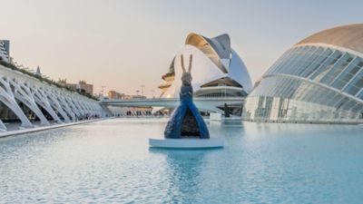 Bajo el sencillo título de AQUÍ ESTAMOS / (HERE WE ARE) encontramos el maravilloso mundo imaginario de la artista suiza-japonesa Leiko Ikemura, una excepcional exposición de esculturas de gran formato que invita al espectador a emprender un viaje mágico componiendo una estrofa lírica en el marco de la magnífica arquitectura urbana de la Ciudad de las Artes y las Ciencias de Valencia.
