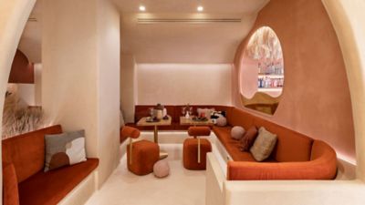 Las formas orgánicas se confunden con el efecto adobe en paredes, pisos y techos, y ejecutado a mano, “para reflejar de la forma más fiel posible esas casas del pasado que podemos encontrar en cualquier rincón de Oriente”.