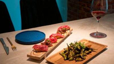 Asimismo, la calidad premium de las materias primas empleadas consigue llevar al comensal a una experiencia nunca antes vivida en la capital. Ejemplo de ello son sus sofisticados pintxos asiático-vascos, entre los que destacan el dim sum de rabo de vaca betizu, yema de codorniz curada, demi-glace de su cocción e Idiazábal ahumado; el pan croissant tostado al fuego con crema de gochujang y angulas a la brasa; el ‘baocata’ brioche de costillar glaseado en barbacoa japonesa y a la brasa; o la trilogía de pintxos de vacas vasco-japonesas -cenital de entrecotte de vaca vasca, waygu y steak tartar.