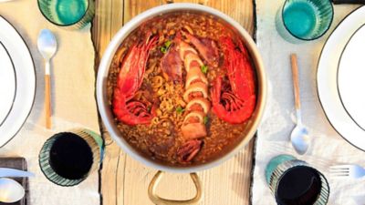 La esencia gastronómica de Fandango es su brasa. La carta tiene su pilar en los pescados con el toque especial y los matices que solo aporta esta técnica milenaria de apariencia sencilla pero que requiere una gran maestría. Los arroces son la otra gran baza de la concina fandanguera. El producto local es el protagonista y el hilo conductor, Fandango tiene una despensa que abarca los 83 km cuadrados de la isla, favoreciendo la sostenibilidad: la sal, los aceites, los quesos, la sobrasada y la butifarra, las hierbas aromáticas, los higos, la huerta de los payeses y, por supuesto, la pesca local de sus costas. La gastronomía tradicional formenterana, que nació de la pobreza y el aislamiento, es la inspiración para una carta actual que quiere transmitir la cultura y esencia del lugar. El arroz es el ingrediente mimado, estandarte de la propuesta y protagonista de la identidad del Fandango, con propuestas tan sabrosas como el meloso con calamar y sobrasada o la paella de verduras asadas a la parrilla en dos texturas. Otro de los platos estrella es ya insignia de la isla, el bogavante con huevos y patatas. Y no faltan los manjares de origen sencillo, pero de fama mundial, como el bullit de peix.