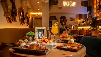 El broche de oro del brunch en Bule Bule lo ponen una selección de platos dulces como la tarta de queso cremosa Bule con su helado de galleta, el croissant con Nutella y helado, la tarta rota de chocolate, o las tortitas caseras con fresas, plátano, helado y sirope de agave. Como no podía ser de otra manera, Bule Bule propone combinar este desayuno tardío con una completa carta de bebidas en la que se incluye una selección de cócteles clásicos, creativos y de autor, que hará las delicias de los amantes a la buena gastronomía.