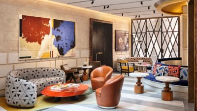 Diseñado por Meyer Davis con la audaz interpretación del lujo de la marca en mente, W Roma es un claro homenaje a la innovación y la historia local. En una ciudad marcada por su inmenso patrimonio histórico, la decoración del hotel combina una paleta de colores puramente italianos junto con estampados y motivos que mezclan distintas épocas destacadas del mundo del diseño. El hotel irradia el glamour de los años 70, con una arquitectura tradicional que se mezcla con bloques de color y atrevidos patrones gráficos en encendidos tonos naranjas, rojos dramáticos y verdes vegetales. Una mezcla ecléctica de coloridos muebles se une a las paredes de piedra tan representativas del pasado del edificio, mientras que las superficies reflectantes aportan un toque contemporáneo al interior. Las 147 elegantes habitaciones y las 15 suites cuentan con detalles como suelos de madera con motivos de espiga que se funden con modernas superficies de mármol en contraste con las cortinas de un rico granate oscuro. Las habitaciones cuentan con emblemáticas vistas, algunas de ellas al Istituto Svizzero, y muchas de ellas con balcones y terrazas privadas. La Extreme Wow Suite (la interpretación moderna de la marca W de una suite presidencial tradicional - ofrece una estancia espectacular con una vida interior y exterior muy codiciada, vistas infinitas de la ciudad y una impresionante terraza exterior de 140 metros cuadrados, perfecta para celebraciones y eventos privados.