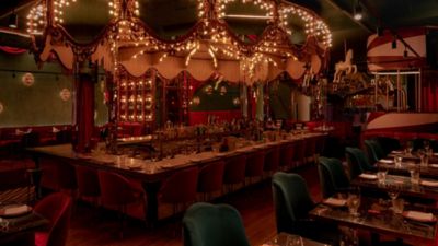 El interiorismo ha estado a cargo del estudio Ilmiodesign y, desde luego, no deja indiferente a nadie. Porque, en esta ocasión, se han inspirado en la comedia del arte italiana, incorporando guiños a la época renacentista y fusionando elementos característicos, como tradiciones carnavalescas, recursos mímicos o habilidades acrobáticas, con su particular toque contemporáneo, para crear un espacio al más puro estilo COMMEDIA DELL’ARTE. Un ambiente elegante, con aires nostálgicos y toques de diversión que transportan al comensal al mundo del espectáculo.