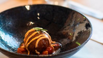 La recomendación de la casa es abrir boca con alguno de sus entrantes como la ensalada de tomate de Formentera acompañada de sardina ahumada, piparras y cebolleta; el gazpachuelo de navajas con vieiras curadas o su tartar de atún rojo. Los arroces tienen un gran protagonismo en la carta debido a la herencia del chef y nos podemos encontrar unos fideos melosos de rape y gamba de Formentera o una paella de rubia gallega, tuétano y romero. En cuanto a los platos principales cabe decir que los pescados son un imprescindible de la carta: la caballa a la plancha previamente curada en sal, la sirvia en adobo o el taco de corvina a la parrilla con zanahoria avinagrada, espinacas y tomates ganan adeptos cada día. Los amantes de las carnes podrán también disfrutar de la cocina de Company, ya sea con su famosa “bomba” de cordero o con el increíble y sabroso steak tartar de entrecot con helado de mostazas o los exóticos raviolis wonton de rabo de toro al curry.