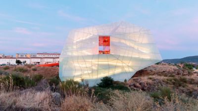 "El edificio será visible en la distancia desde toda una perspectiva occidental, de norte a sur", explican José Selgas y Lucía Cano, el dúo detrás del diseño. "Será visible cuando pase a alta velocidad en un automóvil, por eso lo hemos planeado como una instantánea o una forma luminosa, actuando como una señal para los pasajeros de día y de noche".