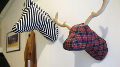 Softheads nació en el imaginario de un joven artista de Barcelona a quien se le ocurrió ironizar sobre las trofeos de caza que cuelgan en las casas y ofrecer una alternativa pacífica a la idea. Su principal característica es que son piezas blandas, personalizadas y hand made. El usuario puede decidir sobre el estampado, la tela, los acabados y el tamaño …¡todo a medida!. Se trata de un elemento de decoración perfecto para los amantes de la estética näif. Sus renos, blanditos, coloristas, soñadores y muy divertidos que se convertirán en el centro de todas las miradas.