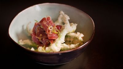 Hace ya dos décadas desde que la particular interpretación que hace el chef de Kabuki, Ricardo Sanz, de la cocina nipona, llegó para deleitar a los más exquisitos paladares, primero de Madrid y, después, de diferentes puntos de España como Tenerife, Valencia o Málaga (y también Menorca, sólo durante este mes de agosto). La comida japonesa-mediterránea o japonesa-cañí, como fue bautizada desde sus inicios, da origen a una serie de platos inigualables, como el nigiri de huevo de codorniz con paté de trufa blanca, el de tuétano o el sashimi de toro (atún rojo) con pan y tomate.