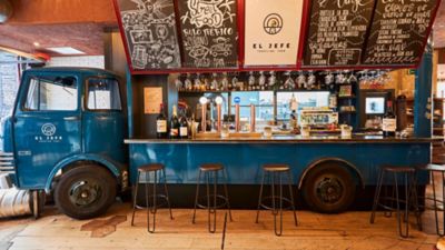 Dado que cada uno viaja a su manera y hay tantas formas de viajar como viajes posibles, en El Jefe, cuyo lema es “Viajamos para cocinar, cocinamos para que tú viajes”, los clientes tienen libertad total para embarcarse en la ruta gastronómica que prefieran y que más se adapte a sus preferencias en cada momento. Es por eso que el espacio se reparte en distintos ambientes: la zona de la entrada con mesas altas, la sala de atmósfera con guiños a la inspiración colonial y la terraza exterior. En concreto, la entrada del local está presidida por un auténtico Food Truck habilitado para hacer las veces de barra y tras la que se ubica la cocina visible para el público. En verdad, este es un claro guiño a Chef, la aclamada road movie de Jon Favreu en la que un prestigioso cocinero de Los Ángeles termina por alcanzar el éxito recorriendo EE.UU. con su camión de comida itinerante. De hecho, la llamada Street Food o cocina callejera es uno de los pilares del concepto de El Jefe y, por ello, en su carta se dan cita los platos más representativos de distintos países del mundo de esta variante gastronómica como son su Hot Dog Truck (salchicha ahumada sobre ternera avileña, mix de quesos y pepinillo agridulce); el Wok (salteado de verduras y setas con aguja de Duroc, tallarines y fondo casero) o la Lincoln Hawk Burger (200 gr. de jugosísima ternera ecológica de Ávila con cebolla agridulce, sofrito de tomate, rúcula, queso Cheddar y patatas fritas dulces). Por supuesto, no podía faltar el Sándwich Cubano, el famoso bocadillo originario de la isla caribeña relleno de lomo macerado, lacón, queso Emmental, pepinillo y mostaza, el cual, a su vez, es prácticamente uno de los grandes protagonistas de Chef.