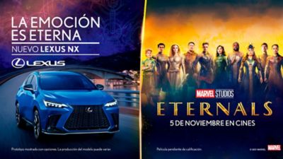 “En Lexus, estamos adoptando la nueva era de la electrificación con una tecnología intuitiva, un gran rendimiento y un excelente diseño; una visión digna de los avanzados Eternos y de su misión de proteger nuestro futuro”, comenta Brian Bolain, Director de Marketing Global de Lexus. “Nos entusiasma esta asociación con «Eternals», de Marvel Studios, que nos permite mostrar nuestro propio superhéroe, el NX 450h+, que representa el primer hito en nuestro recorrido hacia la reinvención de Lexus”.