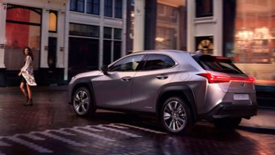 El UX 250h Business ofrece un diseño exclusivo con una representativa parrilla en doble punta de flecha, unas llantas de 43,2 cm (17″) en acabado gris oscuro con ventilación aerodinámica. Además, sus faros Bi-LED, sus luces de circulación diurna en forma de «L» y su luz trasera con aero estabilizador hacen del UX 250h Business un modelo con un diseño espectacular.