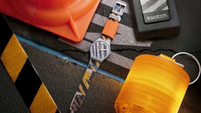 La caja y el reloj se inspiran en el asfalto, ese material un tanto mundano, mientras que las agujas bicolor y la esfera con rayas transversales reflejan "la curiosidad con que observo el día a día". Mientras que las imágenes fragmentadas crean la sensación de movimiento, que se detiene de forma abrupta y juguetona al llegar a una trabilla en la que se puede leer “No parking”, la otra trabilla representa un dispositivo de barrera.