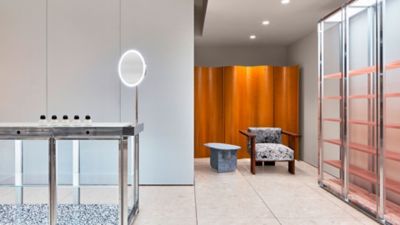 Al igual que en los productos Byredo se utilizan los mejores materiales e ingredientes para crear productos singulares que provocan una reacción visceral, en el interiorismo de la flagship store, se han basado en los principios fundacionales de la marca para que “la gente experimente las emociones Byredo cuando entren en la tienda y perciban el contraste con la pureza de nuestros productos”, tal y como confirma Ben Gorham. Por ello, se han escogido tonalidades extraordinariamente vivas que contrastan con el terrazo de color, así como con las texturas de los expositores y del mobiliario, fabricados en aluminio anodizado y galvanizado.